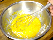 3に1を加えて混ぜ、ラム酒を入れさらに混ぜる。